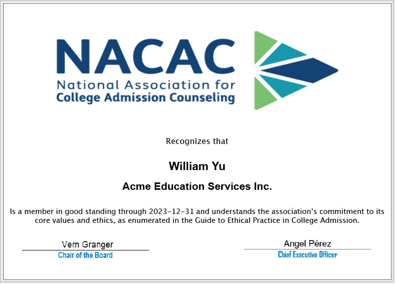 NACAC是美国教育界规模最大、最权威、最有影响力的非盈利教育机构,在美国享有极高的声誉。NACAC对入会的机构和个人有严格的要求,不仅要遵守NACAC章程,还要具备专业咨询能力,因此成为NACAC会员就等于专业能力和职业操守得到了美国教育界的充分肯定。